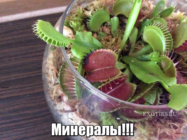 Все хищные растения без исключения надо поливать только мягкой и бедной водой: фильтрованная обратным осмосом, дождевая, талая или дистилированная. Бедная вода - это вода с минимальным содержанием микро- и макроэлементов. Жесткая вода, такая как из-под крана, кувшинов и даже отстоянная, содержит высокий PPM, то есть обогащена минералами, пагубно сказывается на хищных растениях, как так они приспособлены жить в бедных почвах. Все необходимые вещества мухоловки получают из насекомых.
