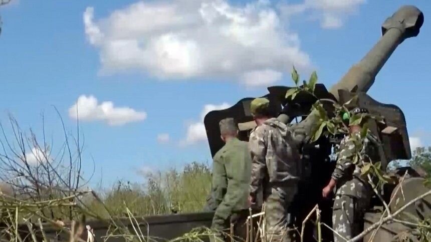 Чаще всего противостояние между союзными силами и националистами принимает форму артиллерийских дуэлей, но и пехота не спит. Проявить себя ей удалось на угледарском направлении. Фото: Минобороны РФ; 5-tv.ru Несмотря на усилия Запада, на карте Донбасса становится все меньше красных точек. Однако две из них продолжают пульсировать очень болезненно для жителей Донецка — это Пески и Авдеевка. Союзные войска изо всех сил пытаются отодвинуть линию огня от столицы Донбасса, но делать это нужно крайне аккуратно. Эксклюзивные кадры в материале военкора «Известий» Валентина Трушнина. Гаубичная батарея 11-го отдельного мотострелкового полка ДНР бьет из проверенных временем советских орудий Д-20. Снаряды 152-го калибра летят за поселок Пески. «Буквально на днях силы 11-го полка 100-й бригады захватили два моста между Песками и Первомайским. Это были сильные укрепрайоны. На один из них даже приезжал Порошенко однажды. Украинцы называли этот опорный пункт „Республика Мост“. Наши его захватили, но эт