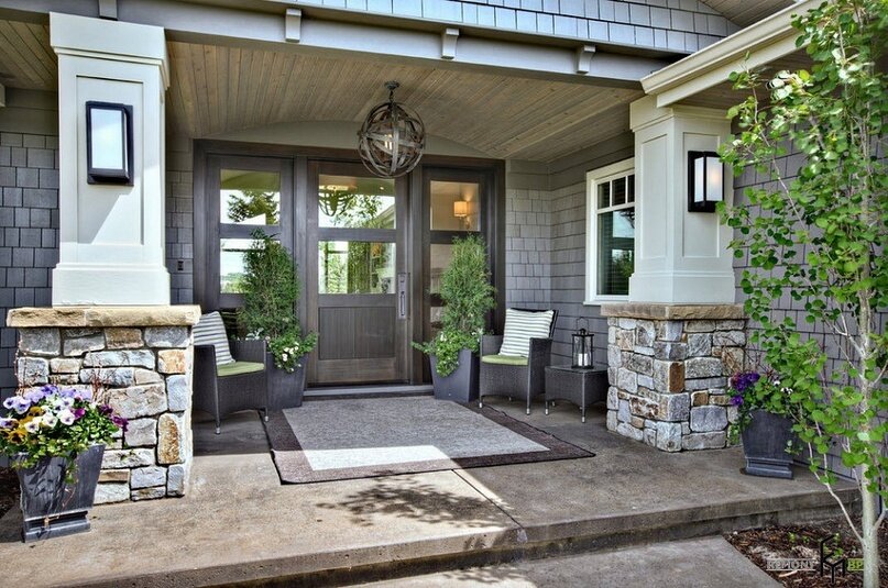 При отделке коттеджа часто забывают о пространстве рядом с дверью. Красиво оформленный вход в частный дом создает приятное впечатление о владельцах. Дизайн зоны не выпадает из общей стилистики ландшафта и согласовывается с экстерьером здания. Чтобы декор крыльца не приедался, существуют методы изменения украшений для разных времен года.