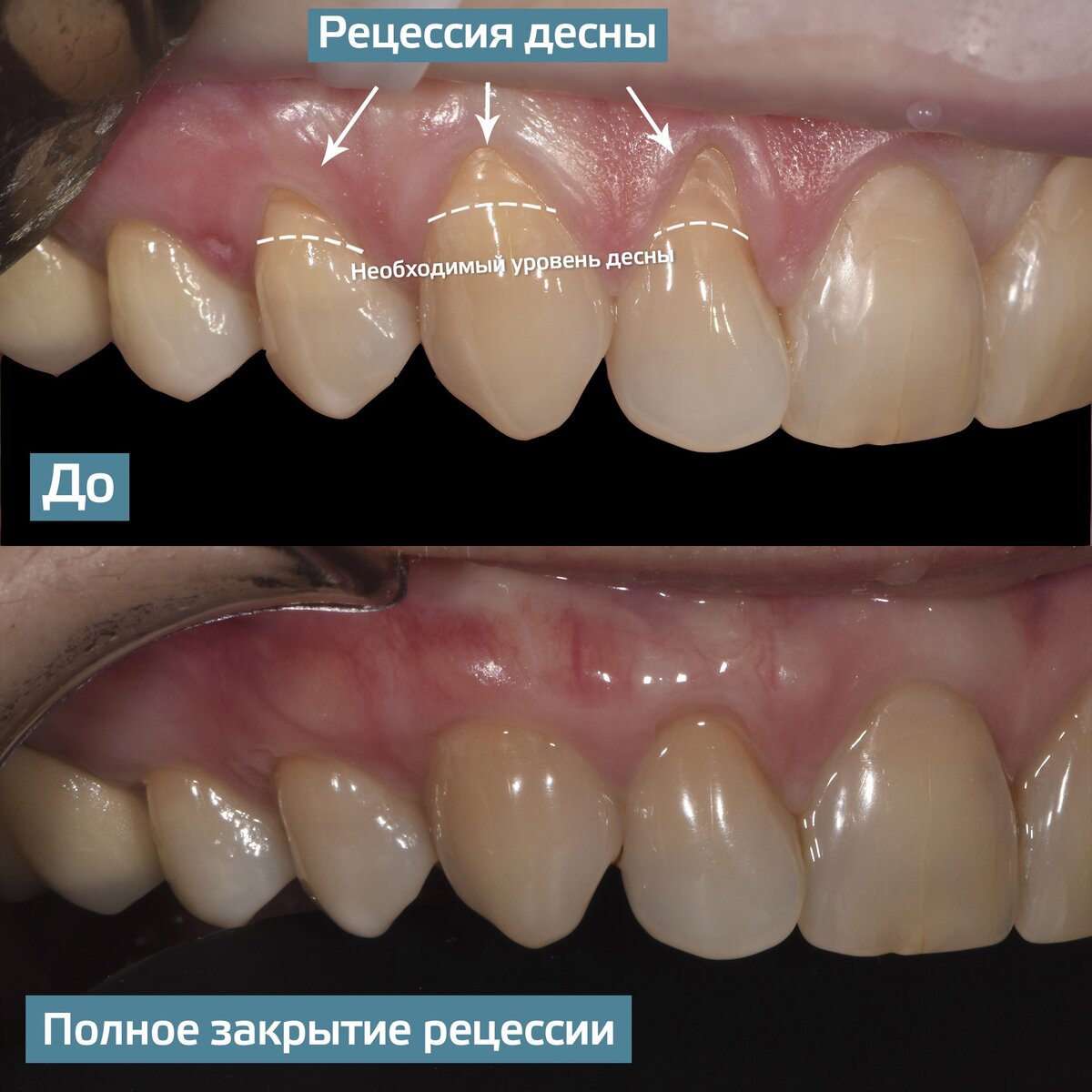 Рецессия десны — очень неприятный процесс. И дело не только в психологическом дискомфорте из-за нарушения эстетики улыбки, но и повышении риска возникновения кариеса, болевых ощущений и гиперчувствительности зубов.