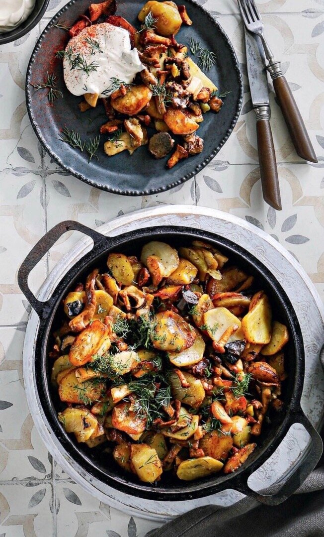 Грибной сезон в разгаре. И в очередной раз я с завистью рассматриваю фотографии, которые выкладывают грибники в соцсетях😉 В нашем регионе грибы не растут, приходится довольствоваться сушеными и замороженными. Именно в сентябре очень хочется просто жареных с картошечкой лесных грибов. Итак, нам понадобятся: 🍲 500 граммов лесных грибов (счастливчики будут готовить из свежих, а у меня 300 граммов сушеных, которые я промою и замочу на ночь); 🍲 800 граммов картофеля; 🍲 3-4 зубчика чеснока; 🍲 топленое масло (именно на топленом получается вкуснее всего); 🍲 соль; 🍲 полпучка укропа. Свежие грибы почистим и нарежем. Замоченные откинем на дуршлаг и дадим воде стечь. На этой воде потом можно приготовить супчик. Картофель очистим и нарежем тонкими ломтиками. В большой сковороде разогреем масло на сильном огне. Выложим картофель и будем обжаривать до золотистой корочки минут 6-7. Добавим грибы. Будем обжаривать на сильном огне еще 5 минут. Уменьшим огонь. Накроем сковороду крышкой и потомим