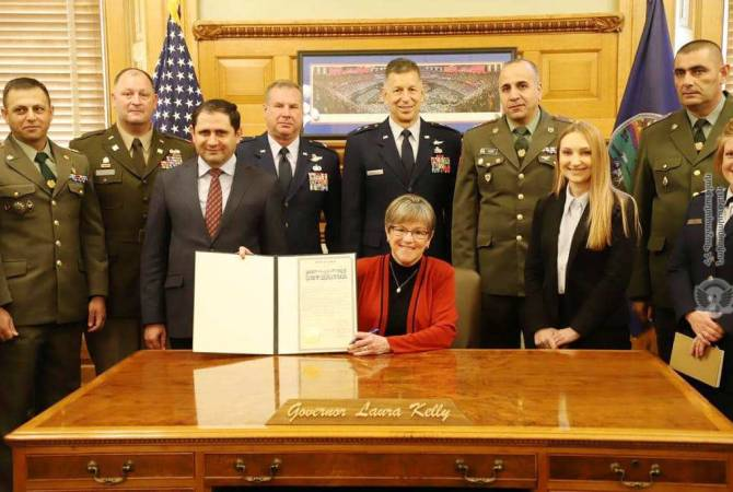 Министр обороны Армении Сурен Папикян встретился с губернатором штата Канзас Лорой Келли. Об этом «Арменпресс» сообщили в Министерстве обороны Армении. Выразив признательность за теплый прием, Сурен Папикян отметил важность отношений между Республикой Армения и штатом Канзас, имеющих многолетнюю историю и высокий уровень. Министр обороны РА представил перспективы сотрудничества в областях, представляющих взаимный интерес, в частности, сотрудничество между Канзасской национальной гвардией и миротворческой бригадой МО РА, а также договоренности, достигнутые в ходе предыдущей встречи с генерал-майором Дэвидом Вейшааром. Лора Келли поблагодарила Сурена Папикяна за визит в Канзас и подтвердила свою готовность приложить максимум усилий для дальнейшего углубления сложившегося за эти годы сотрудничества. В завершение встречи Сурен Папикян пригласил Лору Келли посетить Армению. В честь визита министра обороны Армении указом губернатора штата Канзас день 7 сентября объявлен Днем партнерства Арме