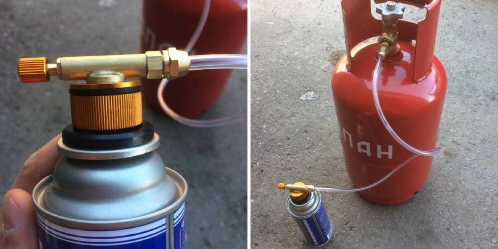 Небольшие одноразовые газовые баллончики, применяемые в портативных горелках и таганках, которыми пользуются в кемпингах, продаются по существенно завышенной цене, если сравнивать со стоимостью пропана на автозаправках. Заправляя самостоятельно такие баллончики с помощью самодельного переходника от большого баллона с пропаном можно довольно заметно сэкономить. Вам потребуется: Сборка адаптера для перезаправки баллончика и его использование Необходимо приобрести специальную гайку с левой резьбой. Купить ее можно в хозяйственном магазине или выточить самостоятельно на токарном станке. Эту гайку со штуцером под тонкий шланг устанавливаем на баллон с пропаном. Затем к штуцеру подсоединяется короткий шланг, на втором конце которого закреплена часть подготовленной газовой горелки. От горелки используем лишь цанговое соединение для крепления баллончика, часть трубки газопровода и краник. Сопло предварительно отрезается. На шланг устанавливаются хомуты. Перед заправкой баллончика из него предв