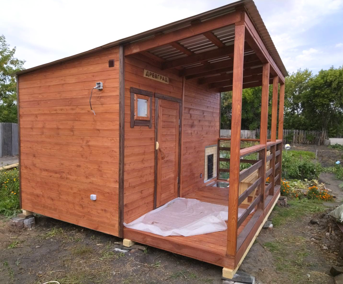 Баня 2*4 с террасой 2*4 установлена в Курганской области. Окрашена в классические цвета - основной - орех, декоративные элементы - палисандр. 2 отделения, печь радуга ПБ21 с баком для нагрева воды обрамлена шамотным кирпичом. Баня собрана и установлена "под ключ" и полностью готова к эксплуатации.
