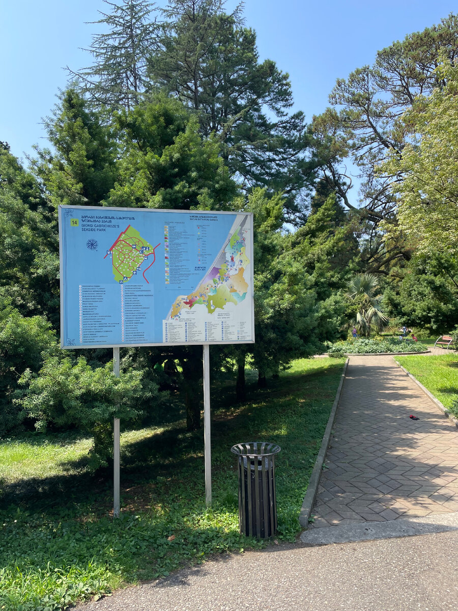 Это начало ботсада, практически сразу от входа с парковки. Есть несколько входов, в том числе от железнодорожной станции, но мы были на машине и приехали к северному входу со стороны Кобулетти. Парковка автомобиля бесплатно, но вход 30 лари с человека и это того стоит! Территория огромная с подъёмами и спусками, очень красивые виды.