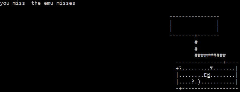 You miss, the emu misses – Вы промахнулись, эму промахнулся. Это лог обмена ударами.