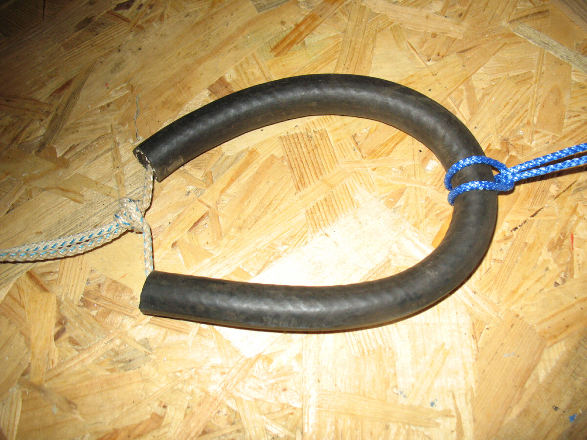 Вибрационный насос должен висеть на амортизирующей подвеске. Такую подвеску очень просто изготовить из обрезка шланга и веревки.