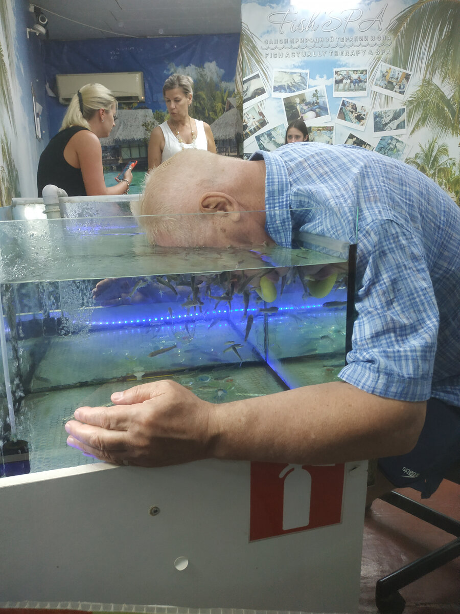 Зрелище не для слабонервных! Кто-то облепил мужчине лицо, откусывая кусочек за кусочком.... Вдохнули, выдохнули?! 1-2-3-4-5 Открыли глаза? Не всё так страшно, как кажется на первый взгляд :) Это рыбки Гарра Руфа, которые используются для пилинга. В одном из салонов Сочи, который мы постоянно проходили по дороге на пляж, можно было отпилинговать любую часть тела. Сама я пробовала один раз на ногах, интересно, что будет, если проделать весь комплекс? Кто-нибудь осиливал больше, чем одну процедуру? Делитесь в комментариях, очень интересно! #экскурсия #кудапоехатьвсочи #пилинг #отдых #юмор #отпуск #отдыхвроссии #прогулкипогороду #туризмпороссии #путешествия #городароссии #достопримечательностисочи #красивыеместа #черноморскоепобережье #курортыкраснодарскогокрая #сочи #туризм #мем