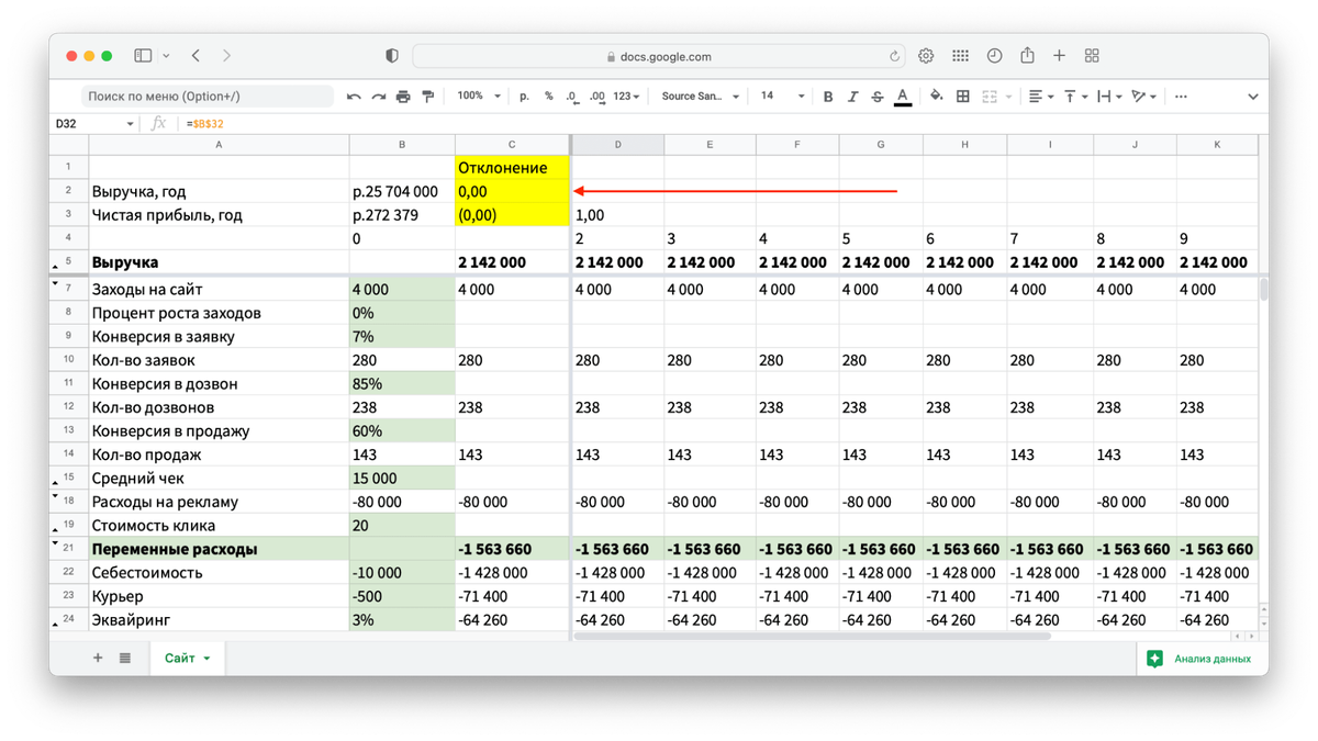 Ответ на этот вопрос идеально искать в финмодели. Это финансовый инструмент для оцифровки бизнеса. В финмодели видно воронку продаж: конверсии, средний чек, количество клиентов, а еще — все расходы компании.