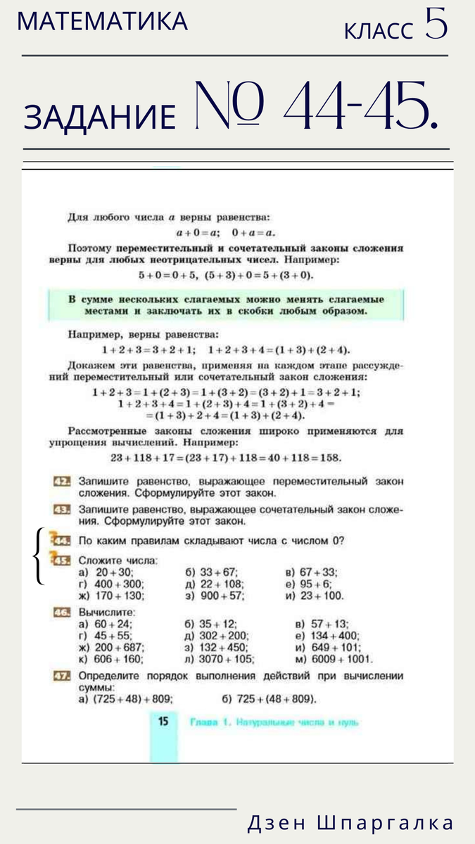 Добрый день Дружочек. У меня за окном солнышко светит. А у тебя? Поняла... Не до сантиментов. Тогда за гранит науки. Дополнение к заданию № 44. Для понимания. Зачастую на уроках математики лишь озвучивают правило сложения с нулём: если к любому натуральному числу прибавить нуль, то получится это самое число; если к нулю прибавить любое натуральное число, получится число, которое было прибавлено а + 0 = а; 0 + а = а. А вот на проверочных работах задают вопросы, которые не были на классном разборе. Считается, что тема элементарная и останавливаться на ней нет никакой надобности. Однако простые вопросы ставят неподготовленных учащихся в тупик, и хорошая оценка за работу им не светит. Хочу, чтобы ты был готов к подобным заданиям и отвечал правильно. Что это за вопросы: 1. Какое число нельзя написать римскими цифрами? (Догадался?) 2. Кто изобрёл цифру нуль? Цифра 0, как и остальные арабские цифры: 1, 2, 3, 4, 5, 6, 7, 8, 9, пришла к арабским учёным из Индии. То есть именно древнеиндийские