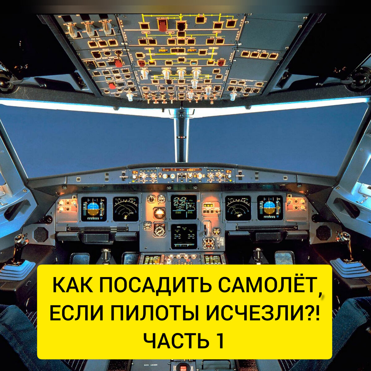 Давайте представим, что с Вами приключилась ситуация из голивудского фильма. Оба пилота по каким либо причинам не могут управлять самолётом и бортпроводники пытаются найти пассажира способного выполнить посадку. После прочтения этой статьи это сможете и вы:). Сразу оговоримся, что мы летим на Airbus A320 (318, 319, 321). В других самолётах операции могут быть иные. Итак вы попали в кабину, далее порядок действий такой: 1. Аккуратно займите любое из кресел пилотов (слева обычно сидит командир, справа - второй пилот) и пристегните ремни. 2. Не трогайте органы управления: сайдстик и рычаги управления двигателями. Это может привести к отключению автопилота, а мы не умеем управлять самолетом "на руках" 3. Убедитесь, что нажата (горит зеленым) кнопка АP1 или AP2 на панели прямо по центру. Это означает, что самолёт находится под управлением автопилота. 4.Установите на ответчике (справа, внизу на центральном пульте) код 7700, этим вы дадите понять, что у вас нештатная ситуация на борту. 5. П
