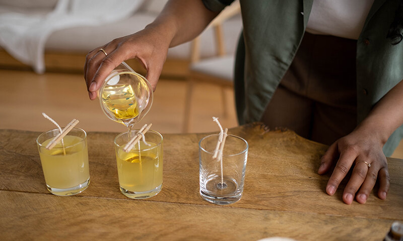В нашей статье мы расскажем об очень простом, а главное – бюджетном варианте изготовления свечей в домашних условиях. Расплавим унылые парафиновые свечи и сделаем из них яркие и необычные. С чего начать? Сырьём послужат, как мы уже анонсировали, обычные парафиновые свечи. Во-первых, их легко найти – продаются практически в каждом магазине. Во-вторых, эти свечи уже дают вам целых два материала для работы: С фитилём, конечно, можно упростить и купить уже готовый в специализированном магазине. Или сделать самим из х/б ниток, оставив пропитываться парафином на стуки. Дальше в список необходимых инструментов входят: Да! Не забываем о защите рабочей поверхности. Расчленяем свечу. Для начала свечи необходимо «подробить». Канцелярский нож вам в помощь. Орудовать им нужно аккуратно, чтобы в процессе не повредить фитиль. Начинайте с краёв свечи, пробираясь к центру. Фитиль аккуратно освобождайте пальцами. Если всё пройдёт без эксцессов, то парафина и фитиля хватит на заливку двух небольших свече