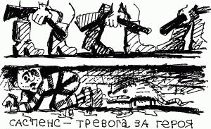 - Закрытый саспенс – когда и герой и зритель знают об опасности, но не знают, откуда она придет.