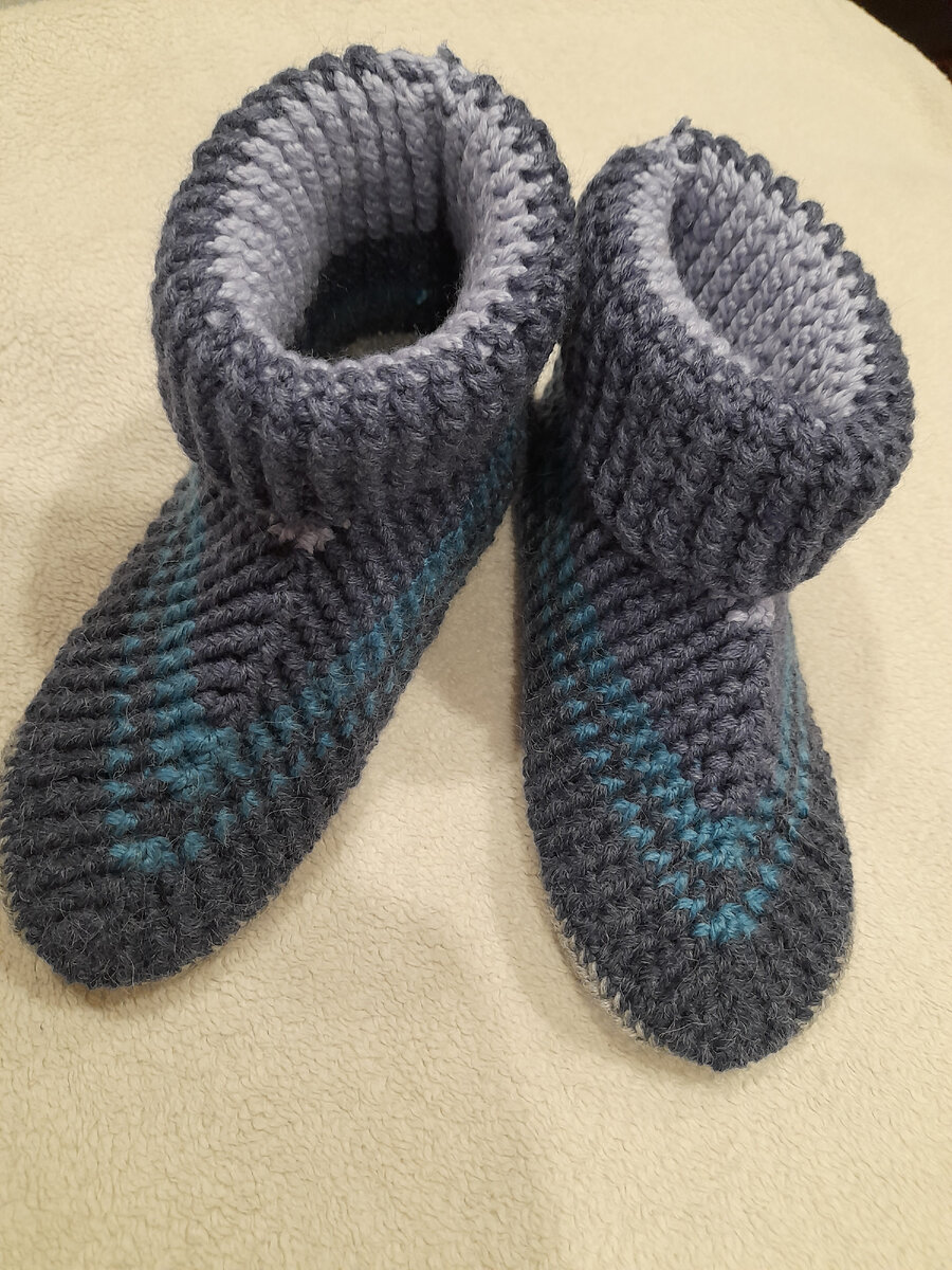 Доброго времени суток всем, друзья! Вчера у меня был очередной курс химии.....а сегодня как и всегда после препаратов я проснулась вялая, как пьяная....лицо горит,глаза слезятся, на все запахи остро реагирую...фу..... Но...все равно...сварила рисовую кашу...между прочим, вкусно получилось. Поела , чаю попила.... Сердце колотится, на душе тяжко..... Пошла сходила во двор, подышала.....и снова улеглась после выпитых таблеток..... Вот так полежу полежу и снова что то шевелиться надо...... Суп сварила лёгкий с лапшичкой.....жидкое то надо есть....поела...хоть и немного, но все равно...... И между делом довязала вот уже к вечеру такие сапожки Вязала крючком из полушерстяной пряжи.....Вот такие получились.....Дочь приезжала, примерила, говорит,тёплые такие......)))))) Ещё буду вязать.....надо ещё в другом цвете...... После обеда у нас небо затянуло тучами, стало как то серо.....аж спать тянуло.....ну на полчасика прикрыла глаза.....и всё.....на большее меня не хватило.... Ладно, ночью