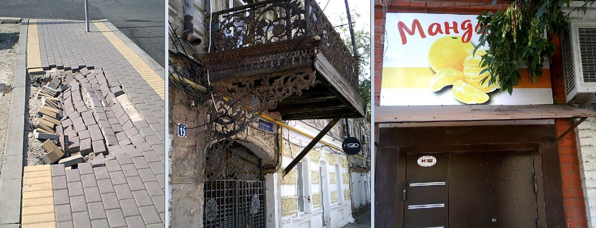 В Астрахани прошлого также не всё шло в полной гармонии. Достаточно полюбоваться на балкон дома по улице Фиолетова. Здесь мастерам прошлого не хватило сил и средств для установки второй витиеватой подпорки, и они ограничились неказистой железякой.