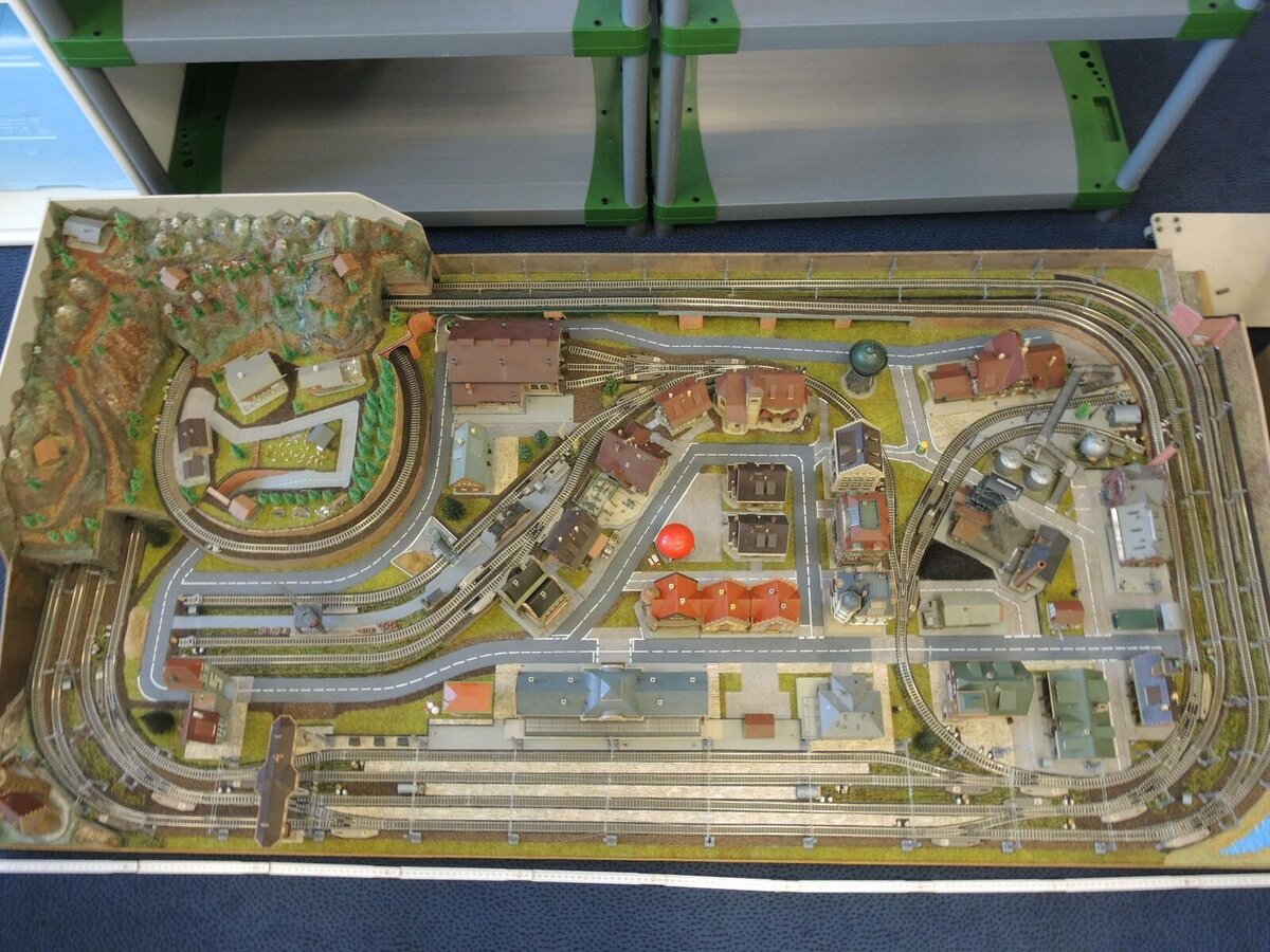 Любительский двух-овальный макет железной дороги. Простая схема движения имеющая недостатки. Несмотря на наличие станции, пропускная способность рельсовой схемы не высокая. Вокзал на макете жд. На радиусных стрелках поезда часто сходят, лучше их не использовать. В особенности малых радиусов R1-R2 или R2-R3. Допустимая безопасность движения может быть достигнута на радиусных стрелках R9. Аналоговый пульт управления макетом. Блок питания макета, а также многожильные кабели управления. Коммутация электрических цепей происходит с помощью специальных многоконтактных розеток-коннекторов. Электрическая подмакетная часть достаточно сложная, не смотря на простой алгоритм движения поездов по макету. Система питания аналоговая. Для запуска поездов по кругу этого достаточно. Большую часть электропроводки занимают вспомогательные устройства и аксессуары. Много проводов требуется для подключения стрелок, светофоров и домиков. Полный комплект. Продолжение темы о домашних жд макетах, мы разберём в сл