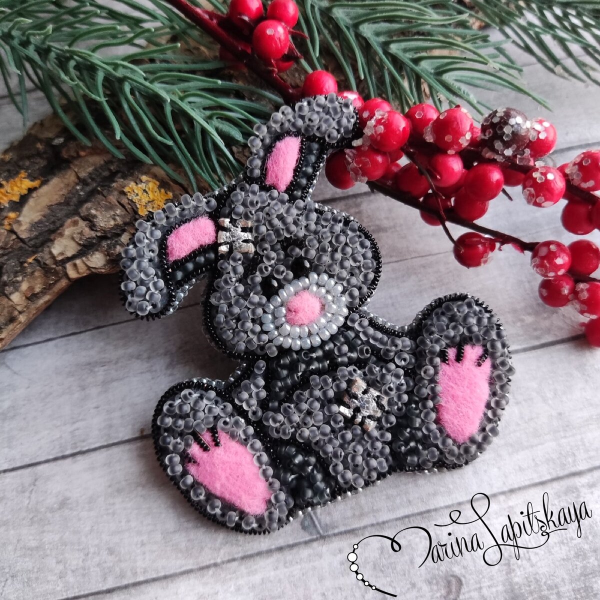 Как сделать брошь из бисера "Кролик - символ 2023 года" (мастер-класс зайка в стиле Тедди)