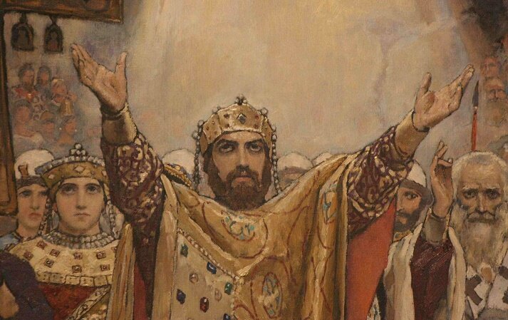 Согласно официальной историографии, в 988 году князь Владимир, крестил Русь. С этого момента официальной религией государства стало православное христианство по византийскому образцу. Однако, в остальном биография князя полна белых пятен и противоречий. Так например, согласно летописям, его похоронили по языческому обряду.