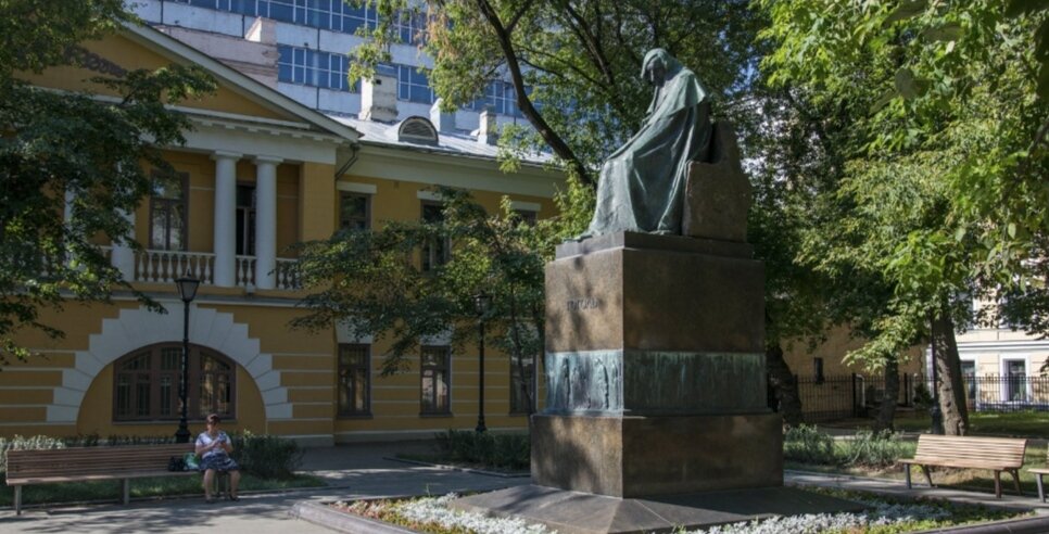 Для меня памятники делятся на те, рядом с которыми я что-то чувствую и на остальные. Важно всё. Где стоит памятник, как, что вокруг. От этого зависит, случится ли магия места или же нет. Памятник Николаю Васильевичу Гоголю (скульптор Николай Андреевич Андреев) стоит во дворе дома. Дома, в котором писатель прожил последние годы своей жизни, сжёг второй том всем известной книги и в котором умер... Вы идёте по бульвару, заходите во двор, узнаëте памятник, подходите и...встречаетесь взглядом с Николаем Васильевичем. Этот памятник изначально встал на полагающееся ему место на Пречистенском бульваре, где простоял 42 года (столько же прожил сам писатель), потом переехал на территорию Донского монастыря и только после этого окончательно был установлен во дворе "Дома Н.В. Гоголя". Интересное, почти мистическое совпадение - казначеем по сбору денег на памятник был человек по фамилии Нос А. Е. Скульптор Николай Андреев с большой ответственностью подошёл не только к образу самого писателя