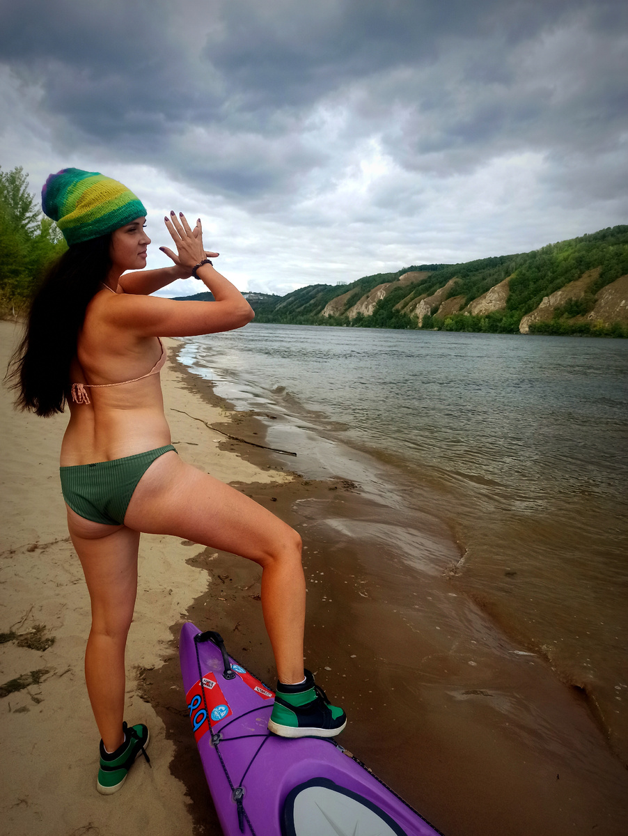 Среда может быть субботой. Катя, если на неё направить объектив, превращается в супермодель. Волга хороша абсолютно всегда. На острове Зелëненький можно найти почти всё: спички, уголь, мангал, палатку и даже картошку. Из-за чего вполне себе рабочий сплав Катиных лодок превращается в поход с привалом и пикником. Что ещё? Вода тёплая, почти горячая, по дороге иногда окунаешь в неё руки, чтобы отогреть их от холодного ветра. Понятно, что затея так себе, но руки всë-таки отогреваются неизвестным науке способом. Очень много птиц. Откуда взялись на Волге бакланы?? Никогда раньше не видела, а этим летом - несколько раз. Вчера - особенно много. Показали себя во всей красе цапли, утки, чайки, но с ними-то всё понятно. Остров Зелëненький, оказывается, совсем потерял свои золотые пески, вся коса поросла ивняком. Песок, конечно, есть, но теперь под деревьями, а это немножко не то. Сокольи горы, их отвесные скалы, холмы, поросшие травами, обрамлённые лесом. Второй в году поход на каяке - тадам - уд