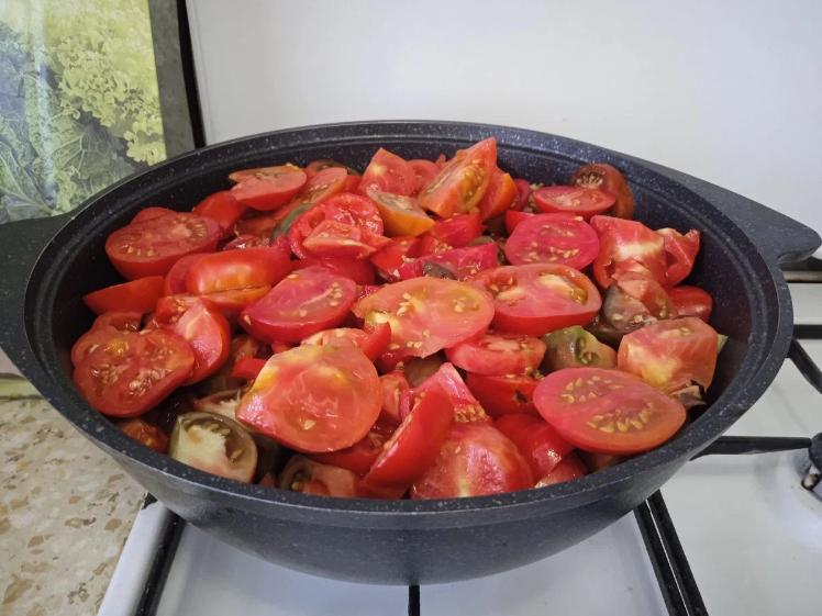 Снова рубрика "Блогеры делятся своими рецептами". Давайте посмотрим, что нам подготовила Лера на этот раз. Она уже делилась со мной с тремя заготовками на зиму ⤵️ Рецепт домашнего кетчупа Нарезаем крупно помидоры, удаляем сердцевину. Если помидоры не дали сразу сок, то подлейте немного воды. Складываем всё в казан и томим их на мелком огне до тех пор, пока они не осядут. Примерно через 40-50 мин. Готовила в обычной кастрюле, ко дну прилипало и подгорало. Вкус сразу портился. А в казане все хорошо. Так что рекомендую и вам! Томить обязательно, не накрывая крышкой. Это очень важно! Периодически помешиваем. Далее добавляем лук, по количеству 1 к 5. Т.е. если вы взяли 5кг помидор, то лука 1кг. Лук также как и помидоры крупно нарезаем. Вместе с луком добавляем крупно нарезанный болгарский перец. Перца нужно немного для вкуса. Достаточно 1-2 шт. на 5 кг помидор. Продолжаем томить на огне ещё минут 40-50. Далее выключаем и измельчаем блендером. Если нет блендера , можно воспользоват