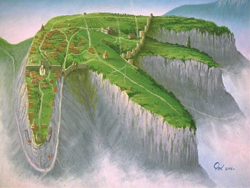 Таким виделся Мангу́п-Кале́ художнику Александру Ятченко (картина нарисована им в 2008 году).