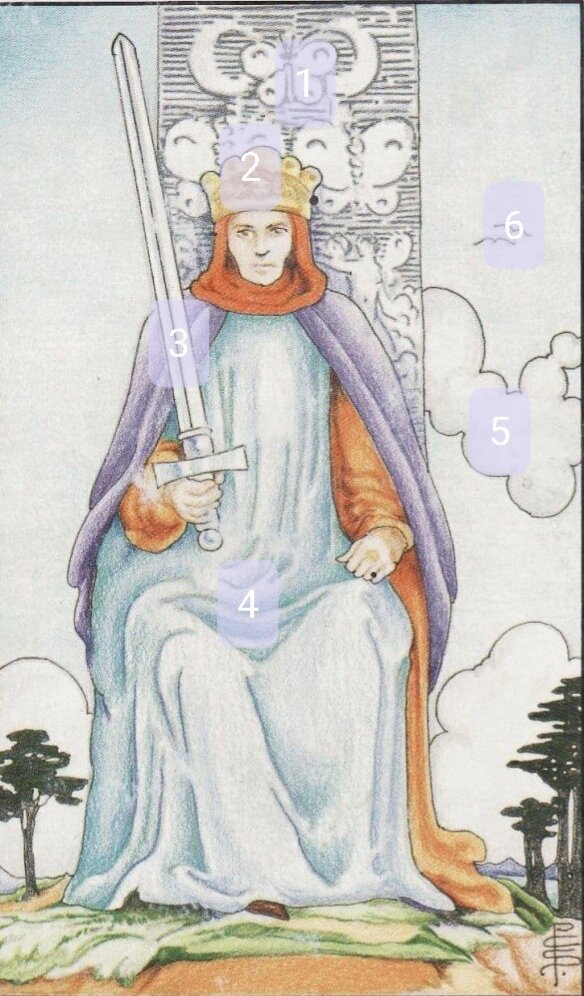 #таро Символика: 1. Бабочки - лёгкость, изобретательность. 2. Золотая корона с изображением Сильфиды - высокое познание, драгоценные сведения. 3. Меч, направленный остриём вверх и вбок - принятие взвешенных решений. 4. Король - суверенитет. 5. Кучевые облака - спокойствие. 6. Две птицы в небе - следование нескольким мыслям или идеям/решение сразу нескольких проблем. Полный образ: Король Мечей символизирует хладнокровного, умного и интеллигентного мужчину. Что показывает Король Мечей: гадатель заинтересован в развитии ситуации, ведёт себя дружелюбно и вежливо, сохраняя здоровую дистанцию с окружающими. Гадатель тщательно обдумывает свои действия и принимает взвешенные решения. Что советует Король Мечей: гадателю следует довериться своим изобретательности и умению находить выход из сложной ситуации. К решению вопросов нужно подходить со здоровой критикой и ясным мышлением. Что обещает Король Мечей: гадатель чувствует себя свободным и занимает суверенную, мудрую позицию. Возможно, выб
