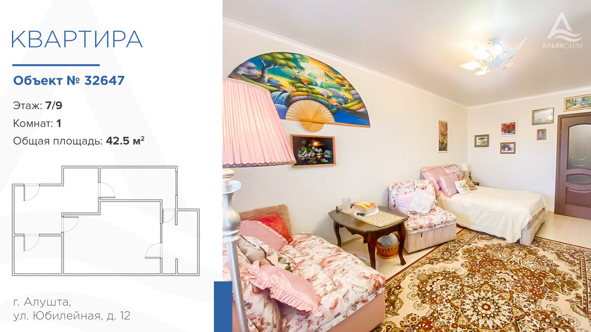 Объект № 32647 Вашему вниманию большая 1-комнатная квартира в городе Алушта, улица Юбилейная, дом 12 на 7 этаже 9-этажного дома. Общая площадь 42.5 кв.м² (без учета лоджии). Жилая площадь 18 кв.м². Кухня 9.5 кв.м². Прихожая 11.5 кв.м². Лоджия 5.4 кв.м². 💥Приятные соседи, на площадке всего две квартиры. Ухоженный двор. 💥Новые детские и спортивные площадки, всегда свободные парковочные места у дома. 💥Расположение максимально соответствует нынешней городской жизни: школа и детский садик в 7 минутах ходьбы от дома. Магазины и остановка общественного транспорта в любой конец города у дома. 💥Встроенная техника и мебель остаются, остальное по договоренности. 💥Коммуникации: центральное отопление, бойлер, газ. Год постройки дома: 1987 Количество собственников: один 💵Стоимость: 5 700 000 руб. Актуальна на момент публикации. Купить 1 комнатную квартиру в Алуште: https://centrestate.ru/1-komnatnye-kvartiry-v-gorode-alushta/ Центр недвижимости «АльянСити» Адрес: г. Алушта, ул. Лен
