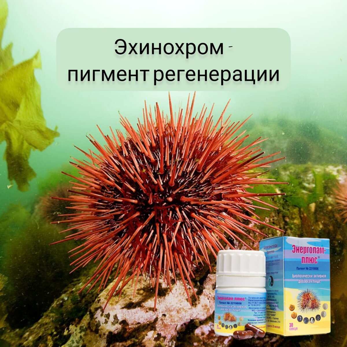 Энерголам-Плюс – защита от вирусов, диабета, инфарктов и инсультов, предотвращение развития онкологии, заболеваний щитовидной железы, глазных болезней (проблемы с сетчаткой, катаракта). Активные действующие вещества – сублимированные при низких температурах *экстракты икры морского ежа* и *ламинарии*. Основные действующие вещества – *эхинохром (мощнейший антиоксидант), аминокислоты, микроэлементы, Омега-3* *Эхинохром* ценен тем, что умеет прекращать цепные реакции перекисного окисления липидов в клетках (которые являются основной для строения и целостности клеточных мембран). При их массовом разрушении стенки мембран слабеют, и клетки перестают выполнять свою функцию. А это ведет к так называемому оксидативному старению. Энерголам-Плюс рекомендован к приему: - всем здоровым людям профилактически для нормализации иммунитета, уменьшения рисков респираторно-вирусных инфекций, сердечно-сосудистых заболеваний, сахарного диабета, заболеваний щитовидной железы; при респираторно-вирусных инфе