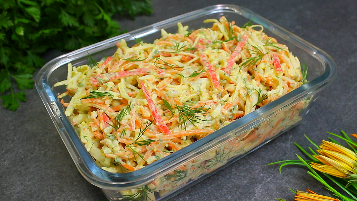 Когда нужно быстро и вкусно, на ум приходит именно этот "крабовый"салат: готовлю на праздники и просто так