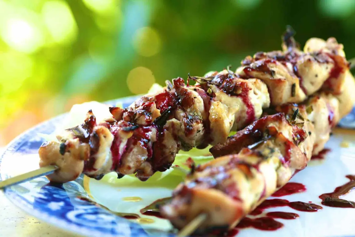 Сочный и ароматный шашлычок, мгновенно вызывающий аппетит! Необычное сочетание пикантного розмарина и сладких ягод дает ему потрясающий баланс вкуса! Как же приятно летом устраивать ужины на открытом воздухе! И, многие со мной согласятся, шашлык для этого идеальное блюдо! Ингредиенты: ДЛЯ СОУСА: Способ приготовления: 1. Нарежьте курицу на кусочки, размером около 4 см. и положите в миску. Смешайте с вином, оливковым маслом, розмарином и перцем. Накройте и оставьте мариноваться в холодильнике в течение одного часа. 2. Удалите кусочки курицы из маринада, сохранив при этом маринад. Насадите мясо на шампуры и щедро приправьте солью. 3. Предварительно разогрейте гриль на сильном огне. Смажьте решетку оливковым маслом. Положите куриные шашлычки на гриль и готовьте в течение 8-10 минут, по 4-5 минут на каждую сторону. Готовый шашлык положите на блюдо и накройте фольгой, чтобы курица не остывала. 4. Приготовьте соус. Положить маринад и ягоды в кастрюлю и варите на медленном огне, пока ягоды н