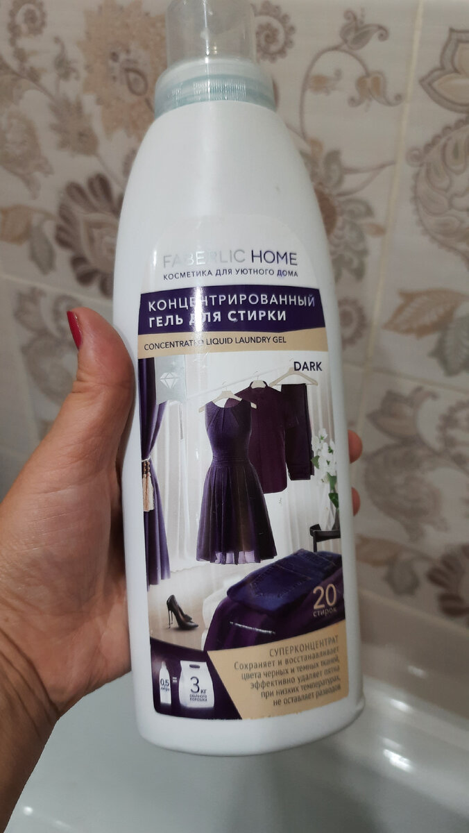 Как мне уже практика показала со временем темные вещи теряют свой цвет, если стирать обычным стиральным порошком. Многие думают, что это Маркетинговый ход производителей. Но мне хочется поспорить с этим. Я в своём интернет магазине Фаберлик заказала гель для стирки тёмный вещей. Гель без химического запаха. Хорошо выпаласкивается с вещей. Не оставляет разводов и следов. Дарит вещам приятный и нежный аромат. Гипоаллергенный. Бережно относится к рукам.Можно стирать детские вещи. Гель средней густоты, не слишком густая и не жидкая. Заменяет 3 кг обычного порошка. Гель темно синего цвета. Специальные компоненты сохраняют цвет тёмных тканей и предохранитель от появления блессого налета. Вот результат после нескольких стирок с гелем для тёмных вещей. Я результатом довольна. После стирки конечно цвет не восстонавливает, если у вас уже одежда стала блеклой. Но все же тёмные вещи стали свежее и ярче. В ФАБЕРЛИК есть разные виды гелей для стирок. Но уже половина разобрали на складе н