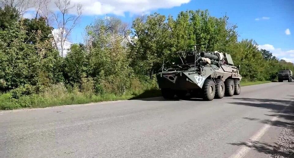 Российская армия перебросила бронетехнику в сторону Харькова сегодня. Ранее оборонное ведомство показало кадры проезда бронетранспортеров БТР-82А, буксируемых 152-миллиметровых гаубиц Д-20 и других машин в этом направлении.