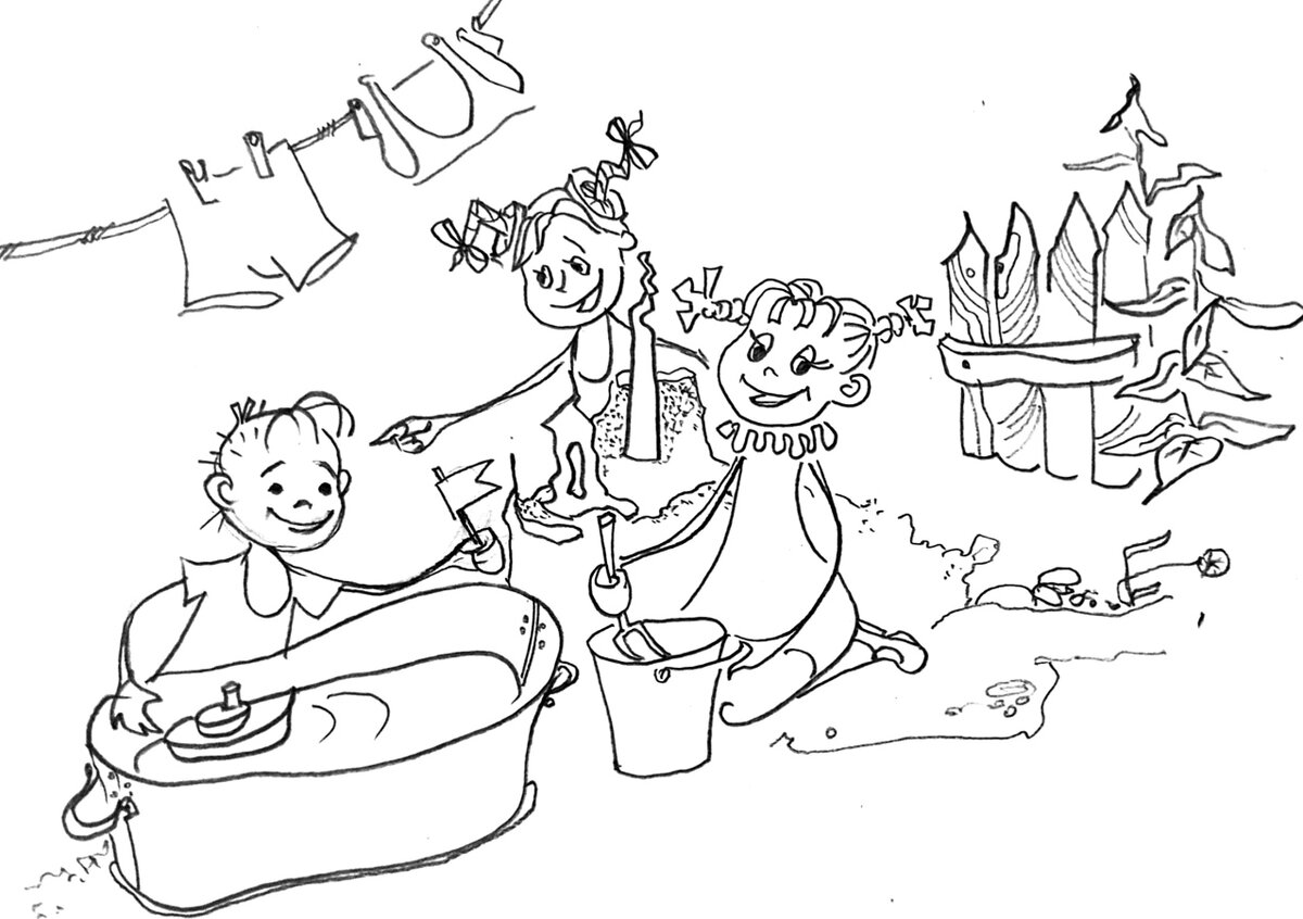 - Ой, куда она опять подевалась? - испачканный в грязи Нюркин палец выписал лихой ус под внезапно потекшим носом - Если щасс не наденешь, пойдёшь в хату! - мамин голос угрожающе звучал с огорода. Чёрные по локоть руки подруги замерли, пока голова, вращаясь в отчаянии, принимала решение - Маруся, видишь трусы на веревке? Тащи сюда. Натягивай мне на голову... - Сказано-сделано. Трусы пришлись впору, две косички выпали в дыры для ног. Эффектная шляпка пришлась всем на радость, даже, заглянувшая во двор мама, засмеялась и махнула рукой, - Нехай так буде! - Собственный вид не волновал неискушенного пирата. Склоняясь над жестяной ванной мы с Игорьком играли в морской бой. Рядом с водоемом, условно принятым за море, были выстроены замки из выползших за сезон в огороде камней. С Божией помощью было объявлено о рождении принцев и принцесс. Из водопроводного шланга запущены реки, разделяющие влюбленных, неизменно смывая царские огороды они текли в океан, образовавшийся в конце двора у калитки. Машина Игорька перевозила принца, сплетенного из травы с куриным пером в голове, для обозначения высокого статуса пассажира, к подножью замка принцессы. Вдогонку Сережин артиллерийский обстрел "Ихние фашисты" бомбили "Нашего Принца". Игорёк отвечал залпом - огонь "При!" - Жених спасался бегством. Травяная Невеста радостная тому, что жениху деваться некуда, брала его в плен своих прекрасных очей. Назревала свадьба. Счастливый финал был близок. Идиллия грядущего торжества слегка колыхнулась от появления новых действующих лиц. Во двор зашёл Павлик со своими закадычными друзьями, услышав последнюю реплику, он наклонился к малышу -