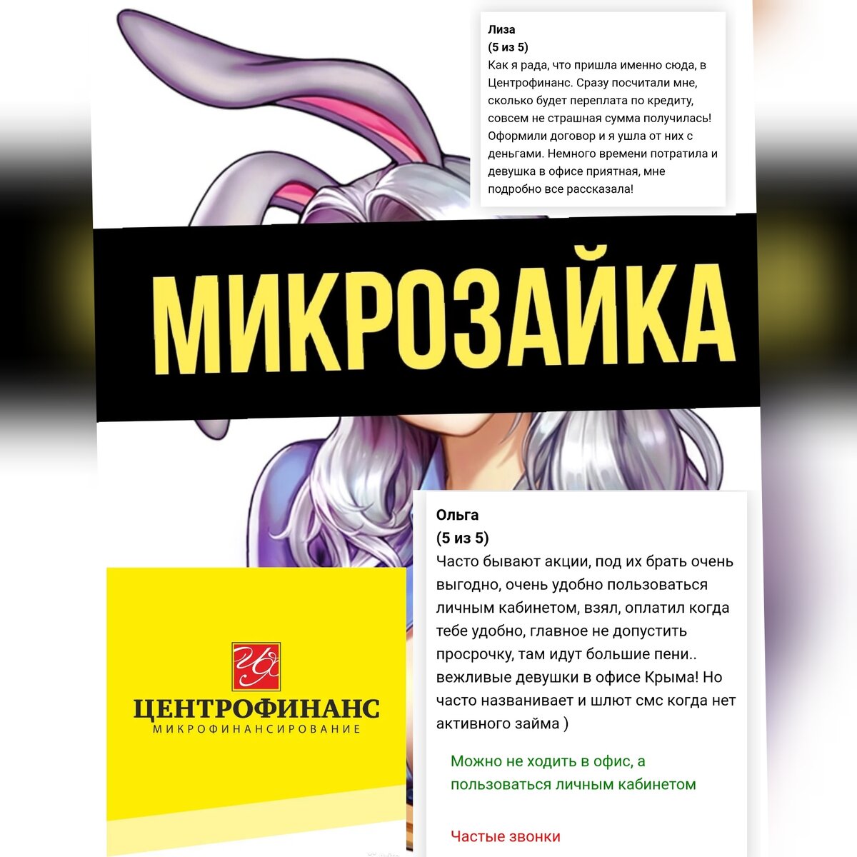 1.Центрофинанс 💸Требования к заемщикам: Возраст - от 18 до 78 лет Гражданство РФ Регистрация по месту обращения Трудовой стаж на последнем месте работы — не менее трёх месяцев 💸Условия: Сумма займа - от 1 000 до 30 000 рублей Срок займа - от 1 до 35 календарных дней Процентная ставка: от 0% 💸Способы получения: В офисе компании Способы погашения: Сбербанк Онлайн Банковским переводом Банковской картой В любом офисе компании 🏆Занимай и мечты исполняй: https://clck.ru/yXevC 2.Умные Наличные 💸Займы на банковскую карту за 15 минут по всей России 💸Заявки рассматриваются с 9 до 21 часа по МСК, без выходных 💸Для получения займа нужен только паспорт и банковская карта 💸Требования к заёмщику: от 18 до 65 лет все регионы России кроме Северного Кавказа 💸от 3 000 до 30 000 рублей от 5 до 30 дней процентная ставка 1% в день оплата и погашение банковской картой 🏆переходи по ссылке и ты сможешь не дожидаться зарплаты, чтобы позволить воплотить свои желания, зайка! http