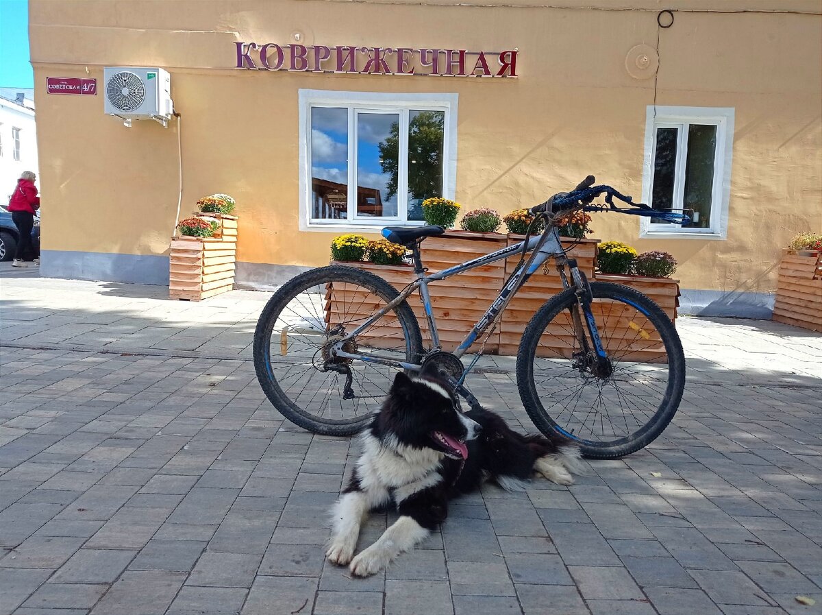 Что только не ждало нас на пути! И стаи куропаток, и мосты, и перепаханные поля, из-за чего приходилось искать объездные пути, и подъёмы по длинным лестницам (с привязанной собакой и велосипедом в руках это, как вы понимаете, то ещё препятствие), и километры вдоль трасс. А потом мы ехали по городу с его достаточно активным движением, когда надо объ