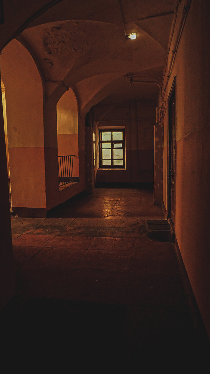 Любопытное здание встретилось мне по лету. Заглянув в открытую парадную на улице Чайковского, я попал в целый лабиринт лестниц и переходов. По сути, длинные коридоры, пронизывающие все здание, перекликаются с несколькими парадными, и из каждой точки дома можно попасть в другую не выходя на улицу.