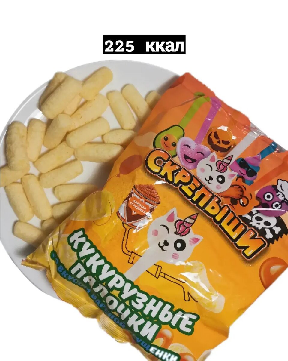 Кукурузные палочки со вкусом варёной сгущёнки 😏 Марка от Магнита, которая завоевала сердца не самим продуктом, а стилизованными игрушками, за которыми охотились наверно все 😅(👇🏻поделитесь, вся ли в вас коллекция??) Сразу спойлер! - внутри пачки нет скрепышей! 🤪 УПАКОВКА: Небольшая оранжевая пачка с изображением любимых скрепышей😁 оформление очень детское, что несомненно заставит обратить внимание ВНЕШНИЙ ВИД:. Кукурузики плотные, по размеру как палочки "Holy corn". Они выглядят качественно сделанными – все имеют одинаковую форму, посыпки достаточно🤤 ВКУС: Аромат сгущёнки несильный, и больше пахнет сахарной пудрой. На вкус сладкие, с молочной ноткой от сгущёнки. Хорошо хрустят Не скажу, что я сильно впечатлена этими Кукурузикими. Но так как у них вкусная цена, иногда можно и взять. Все же как по мне самые вкусные палочки - это "Кузя Лакомкин" классика😏 СОГЛАСНЫ ? Вес: 50гр. Цена: 18 рублей 💰 (Магнит) 🔻Внешний вид: 5 /5 🔻Состав: 4/5 🔻Вкус: 4/5 🔻Послевкусие: 4/5