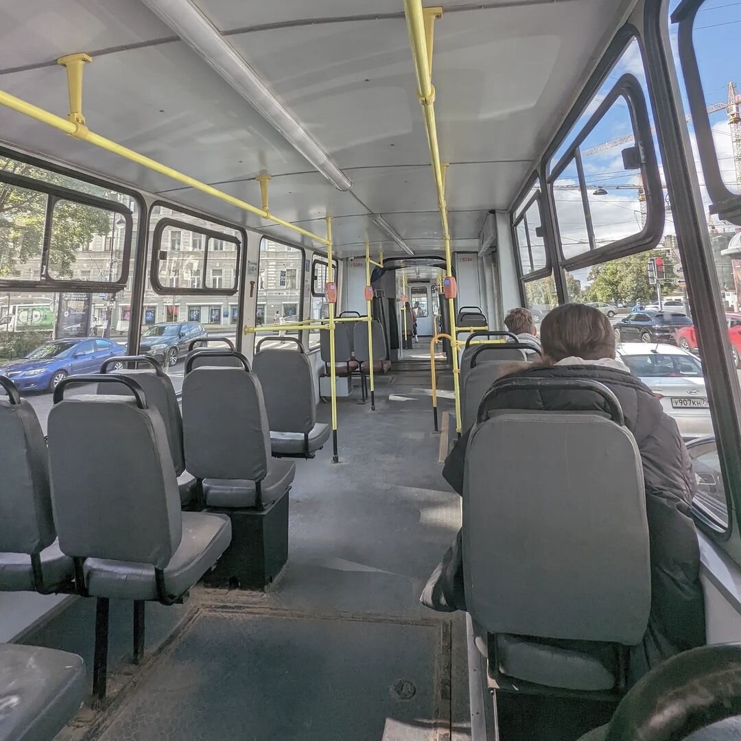 Не ездил на трамвае уже тысячу лет. Кажется, что даже забыл, как же это кайфово. Трамвай это как поезд - такой же ровный, но чуть более неторопливый. Он выше автобусов и машин, так что обзор из окон всегда хороший. Это как экскурсия по городу с молчаливым гидом. Ну или путешествие в потоке. Еду на трамвае и вспоминаю, как несколько лет подряд катался на нём до работы. Зимой, весной, осенью и летом один и тот же маршрут был привычным и одновременно разным. Мне нравится езда именно на старых трамваях, которые гремят, но в этом шуме есть успокаивающий эффект.