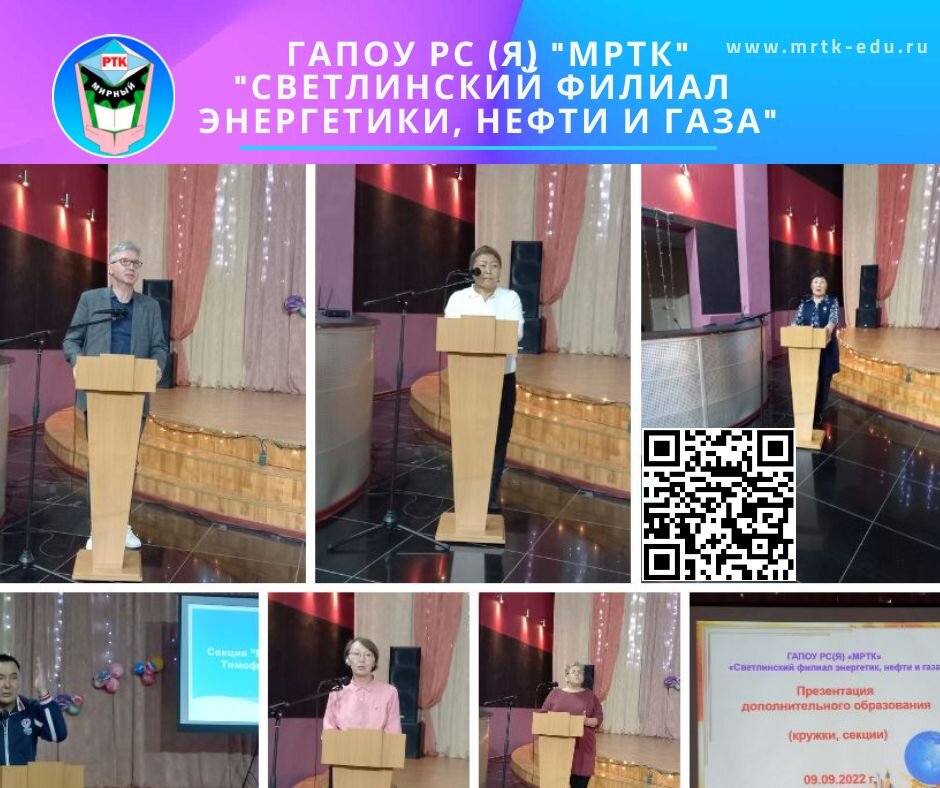 Презентация кружков и секций для студентов «Светлинского филиала энергетики, нефти и газа». 9 сентября 2022 года в «Светлинском филиале энергетики, нефти и газа» МРТК для студентов проведена презентация кружков и секций. Для нашего филиала— это стартовое мероприятие и старт получился успешным, а главное массовым. Руководители подробно рассказали о деятельности своего кружка и секции, поделились достижениями кружковцев, что заинтересовало обучающихся. Ребята не только узнали всю необходимую информацию о творческих и спортивных направлениях дополнительного образования, но познакомились с педагогами. С напутственным словом выступил заведующий «Светлинским филиалом энергетики, нефти и газа» МРТК Дмитрий Ситнянский. Педагоги дополнительного образования готовы поделиться своими знаниями и увлечь ребят в мир творчества. Ждем наших дорогих студентов! Надежда Дансарунова, заместитель заведующего по ВР. Пресс-служба ГАПОУ РС (Я) «МРТК» «Светлинский филиал энергетики, нефти и газа». #Светлинскийф