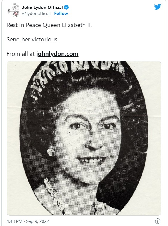 После известия о ее смерти три участника первоначального состава Sex Pistols прокомментировали кончину королевы. Фронтмен Джон Лайдон, он же Джонни Роттен, известный в последнее время своими монархистскими взглядами (сериал "Корона" ему, между прочим не зашел), даром, что слова песни написал именно он, поделился в Твиттере тем же портретом Елизаветы II, который был использован для "God Save The Queen", за вычетом панк-модификаций. “Покойся с миром, королева Елизавета II”, — подписал он твит, перефразировав строку из гимна. — “Пошли ей ратных побед". В ко