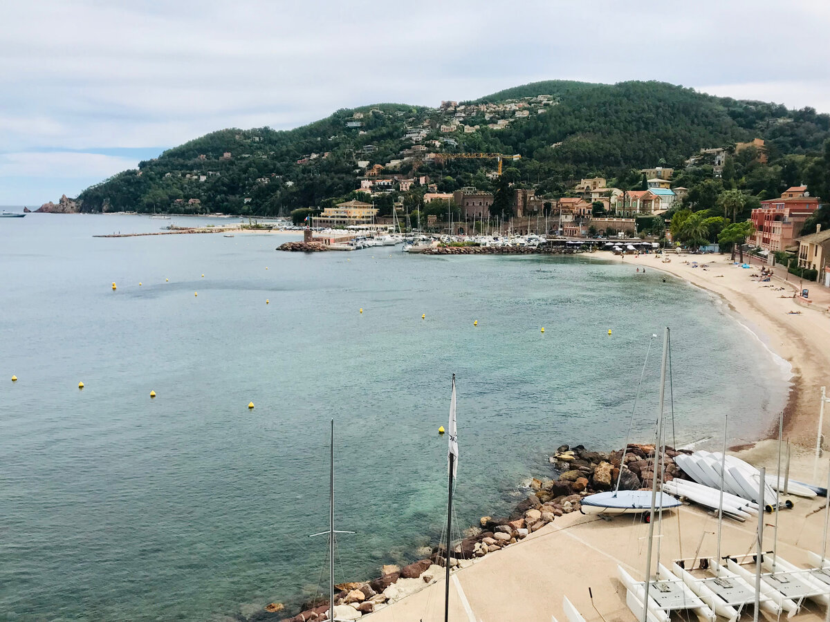 Маленький, но живописный Теуль-сюр-мер, с видом на горный массив Эстерель. Это курортное поселение Французской Ривьеры обрамляют горы и красные порфировые скалы, сообщающие приятный розовый оттенок всему пейзажу, включая море. Расположено в 40 км от Ниццы, недалеко от Канн. Спокойное место с чистыми песчаными пляжами, для купания, созерцания, прогулок и походов.