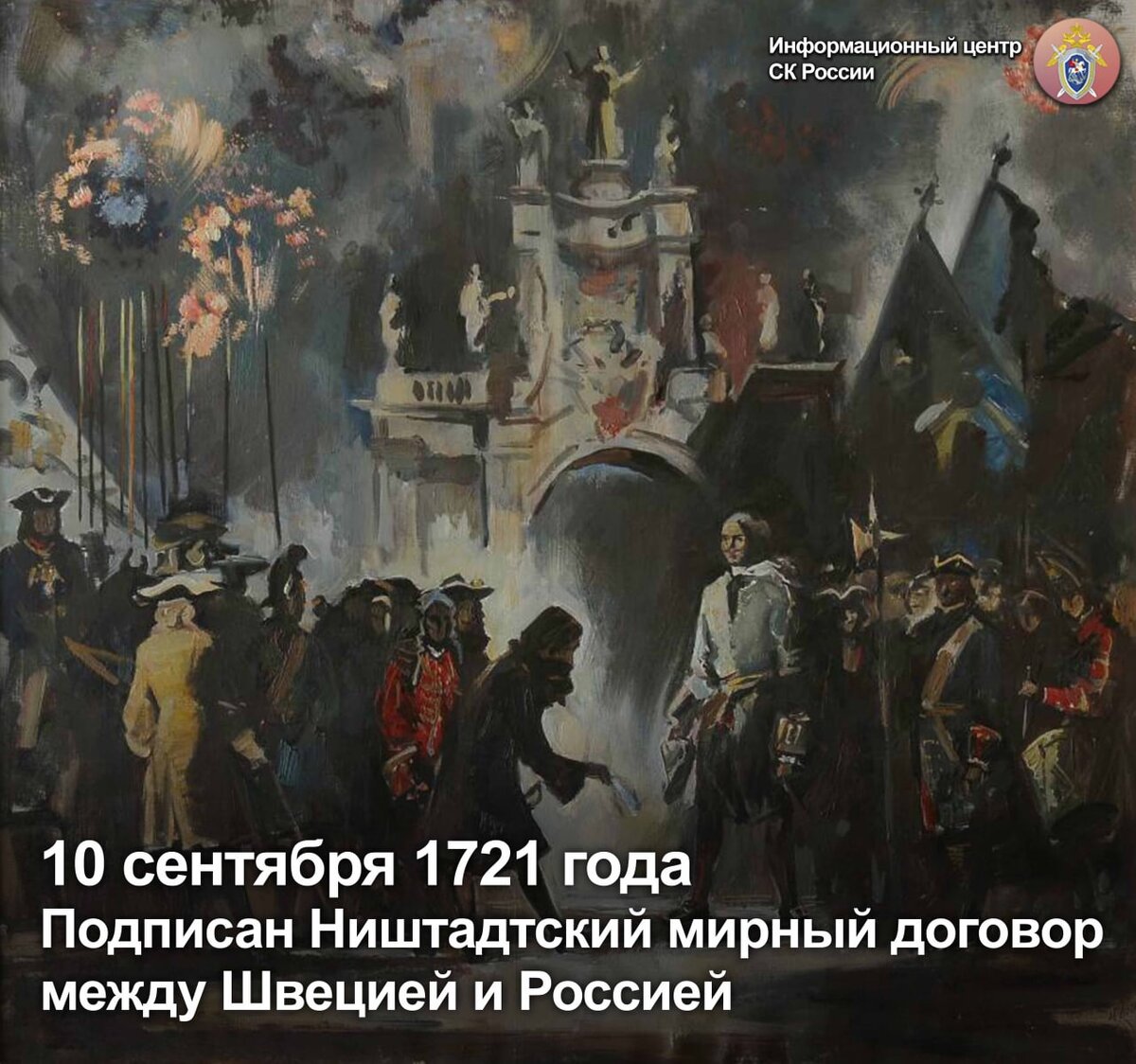 10 сентября (30 августа – по старому стилю) 1721 года в городе Ништадте был подписан русско-шведский мирный договор, завершивший Северную войну 1700-1721 годов. По его условиям устанавливался вечный мир между обоими государствами, им запрещалось вступать в союзы, направленные друг против друга. К России отошли Лифляндия (с Ригой), Эстляндия (с Ревелем и Нарвой), часть Карелии, Ингерманландия (Ижорская земля) и другие территории «в совершенное непрекословное вечное владение и собственность». Россия получила первоклассные порты и гавани на Балтике, а Прибалтика - 300 мирных лет для экономического и национального развития. Таким образом была решена основная геополитическая задача, стоявшая перед Россией с XV века — получение свободного выхода к Балтийскому морю. Благодаря этому завоеванию морские державы стали зависеть от России как в области вооружений и торговли, так и в области снабжения материалами для кораблестроения. После блистательной победы в Северной войне 2 ноября (22