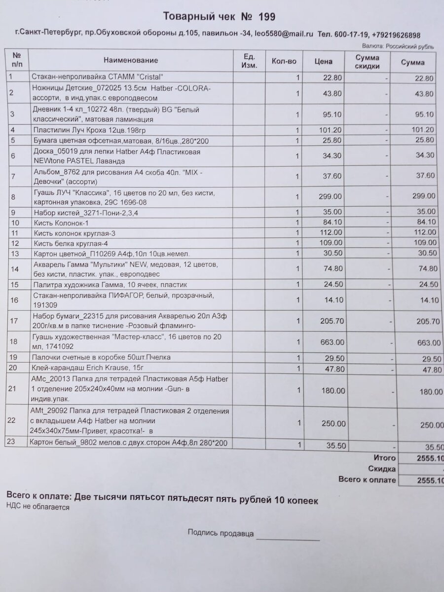 Добрый день, уважаемые читатели! Что-то я припозднилась с данной статьей. Но самой стало интересно подсчитать, сколько же потрачено для сборов первоклассника в школу! Наша школа логопедическая, 13 человек в классе. Но программа обычная, как и везде. Дети учатся без умственной отсталости, просто с логопедическим проблемами - дизартрия, дисграфия, дислалия, дислексия итд Программа у нас - школа россии. Учебники и рабочие тетради школа полностью выдала. Покупать не пришлось. Часть канцелярии не считаю - подарок из садика первокласснику. Оттуда взяли ножницы, цветные карандаши, простые карандаши, белый и цветной картон, цветную бумагу. Вторая основная часть канцелярии закупалась одной из мам нашего класса где то на складах по очень дешёвым ценам. Она выдала список - выбрали каждый, что посчитал необходимым ребенку. У меня вышло на 1380. Вот список Дальше основной расход семейного бюджета - поход в детский мир. За одеждой и маленькой частью канцелярии. Плюс белая и голубая рубашка, галсту