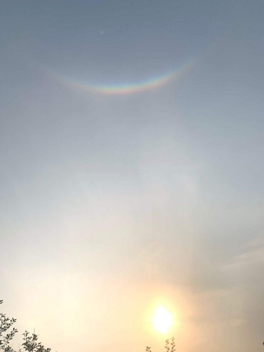 В конце августа мы с семьей отдыхали на даче. Случайно я заметила на небе странное явление, никогда не видела «перевёрнутую радугу». Эта радуга удивила, ведь она отличается от обычной, и небо было чистое, погода солнечная. Пришлось залесть в интернет, где было достаточно информации. Выяснилось, что данное явление похоже на обычную радуга, по физика этих двух явлений заметно различается. Отрывок из статьи с просторов интернета: «Впрочем, в то время, когда появляется зенитная дуга, небо не является абсолютно чистым. На большой высоте (7 – 8 тысяч метров) находятся тонкие перистые облака, которые представляют собой скопление очень мелких кристаллов льда. Когда Солнце светит под определённым углом, его лучи попадают на эти кристаллы – и образуется та самая перевёрнутая радуга.»