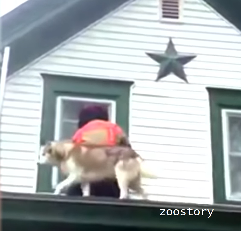 Хаски забрался на крышу, пришлось вмешаться пожарным. Собака отблагодарила его интересным способом