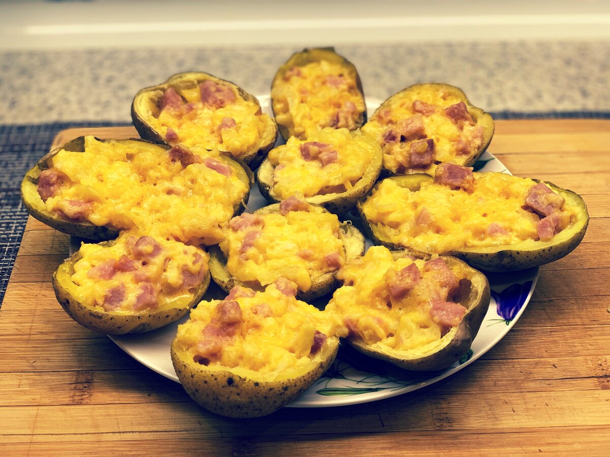 Картошка - как говорится, "второй хлеб". Обожаем всей семьей такое простое и вкусное блюдо. Приложив немного усилий, мы получим вкуснейшее блюдо, как в ресторане. Справится даже подросток. Без дорогостоящих ингредиентов и не затрачивая много сил и времени. И так, вот что нужно сделать, для приготовления вкусной сливочно-сырной “крошки-картошки”. Картофель подойдет любого размера, диаметром больше чайной ложки. Выбирайте клубни без глубоких "глазков". Хорошо отмойте под струей воды, можно даже со щеткой. Мы будем использовать картофель вместе со шкуркой. В ней много витаминов и она улучшает вкус. Выложите на тарелку и поставьте в микроволновку. Нам необходимо запечь до готовности и чтобы не испортить продукты, будем включать по 5 минут. Прошло 5 минут, переворачиваем картофель и ставим еще на 5 минут. Второй раз будем проверять готовность зубочисткой. Если она без усилий выткается в картофель, то он готов. Мне потребовалось еще 5 минут для полной готовности. Разрезаем напополам по