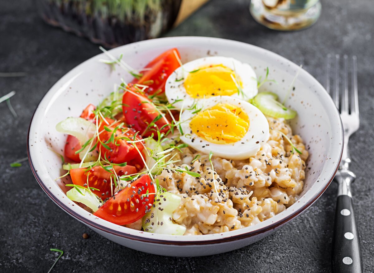 Необычное сочетание, о котором мало знают, но овсяную кашу можно сделать ярким блюдом по вкусовым качествам, если добавить в нее сыр и помидоры. Эта полезная крупа хорошо с ними сочетается: помидоры усиливают вкус, а сыр придает ей кремовую текстуру. Для рецепта лучше выбирать необработанные хлопья овсянки и сладкие помидоры черри. Чтобы украсить получившееся блюдо, по желанию в него добавляют маслины. Овсяная каша с помидорами на завтрак Готовится просто и быстро, поэтому рецепт идеально подходит для завтраков. Чтобы приготовить кашу на одну порцию, понадобятся: Процесс готовки занимает 15-20 минут. Овсяная каша с брынзой и помидорами В этом рецепте используется необработанная овсянка. Помидоры иногда заменяют авокадо или красным болгарским перцем. Хозяйке понадобится следующий список ингредиентов: Особенность в том, что овсяную крупу предварительно заливают чистой водой и оставляют на восемь часов. Овсянка с луком и тушеными помидорами Интересный рецепт несладкой каши придется многим