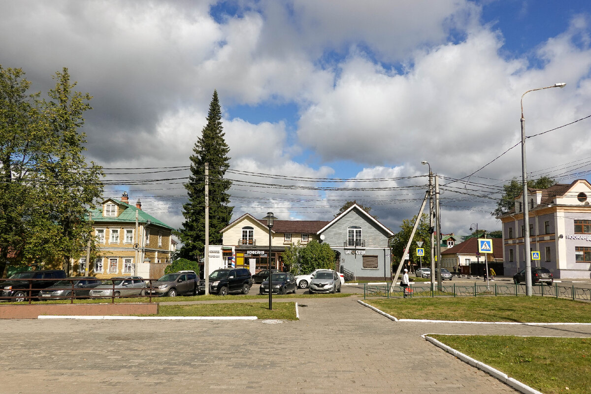 Конечно же, вы много раз бывали в Сергиевом Посаде, и возможно, вам уже несколько наскучили красоты Троице-Сергиевой Лавры. Чтобы разнообразить пребывание здесь, покажу вам новый отличный пешеходный маршрут. Начнем его недалеко от вокзала, на перекрестке 1-й Рыбной и Вознесенской улиц. Допустим, вы приехали на электричке и отправились в торговый центр 7Я перекусить с дороги. Вот от него и отправляйтесь. Проходим несколько десятков метров до благоустроенной Сергиевской улицы и идем по ней на север. Вот на этом месте стоял прекрасный комфортный двухэтажный дом советского времени. Ах, как хорошо было бы его восстановить! Но наверно это невозможно, потому что дом только что снесли. Выглядел он так. Идем далее. Слева будет частная школа "Дарование". Справа жилой комплекс "Донской". Строился с 2014 по 2021 годы. Дом по Сергиевской 1А - гостиница "Аристократ". Это не реклама, я там не жил. Перед гостиницей уютный пешеходный бульвар с качелями, лавочками и малыми архитектурными формами. Обустр