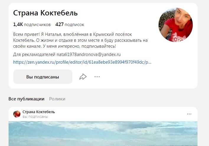 Наталья и её канал Страна Коктебель. Наташа переехала в Коктебель из Нижнего Новгорода. Но влюбилась в этот крымский посёлок она гораздо раньше. Но работа и прочие обстоятельства нас всех часто привязывают к не самым любимым местам. В жизни Наташи всё изменилось с рождением сына Максимки. И вот уже несколько лет они живут, растут и познают окружающий их прекрасный мир. Не просто познают, а ещё и делятся и увиденным и впечатлениями со всеми нами. И знаете, что приятно, впечатления вижу я только положительные. Посмотрите, даже шторм показан прекрасным Есть конечно ролики не только в замедленной съёмке и не только шторма Море бывает спокойным и гладким, как зеркало И это кстати самый свежий на текущий момент из роликов. Зацените пляж и море в Коктебеле 23 сентября 2022 года Конечно Наташа и Максимка бывают не только на пляже, они посещают множество интересных мест, например посмотрите какой замечательный в Коктебеле зоопарк Но и не роликами едиными наполнен канал Наташи. Она интересно оп